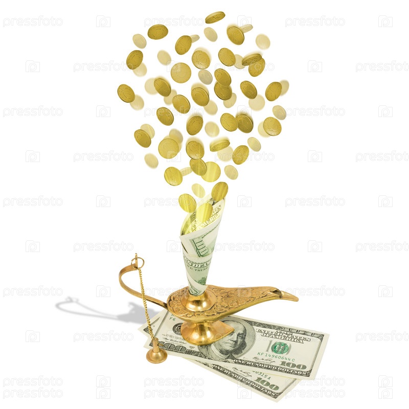 Деньги летят из волшебной лампы Аладдина