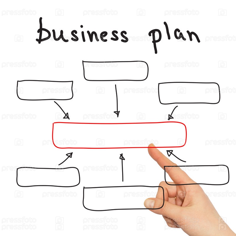 Рука указывает на блок-схему
