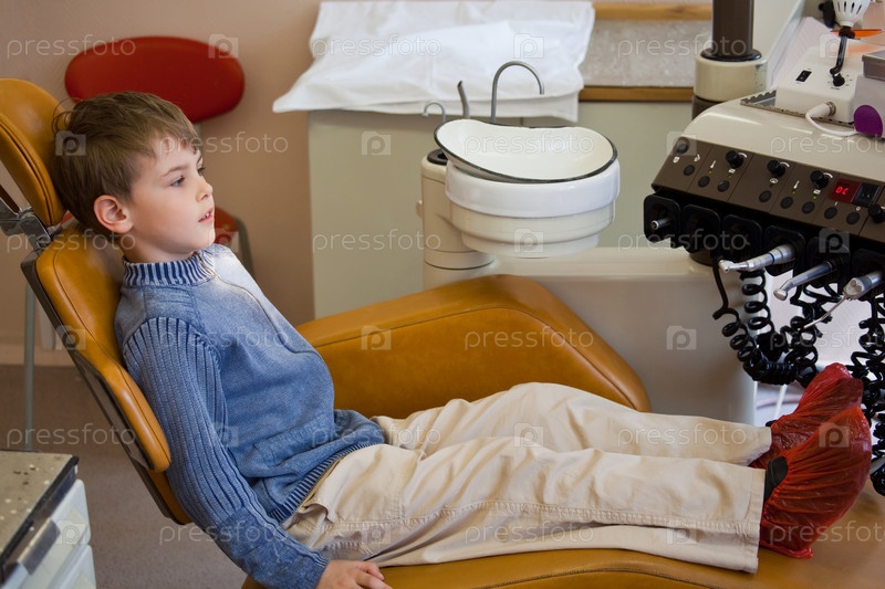 Мальчик ждет медицинского работника в кресле стоматологического офиса