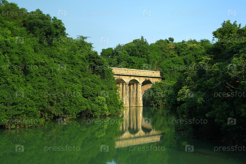 Озеро с каменным мостом