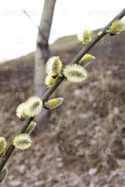 Веточка цветущей вербы по весне