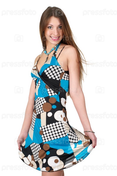 Симпатичная девушка в летнем платье на белом фоне