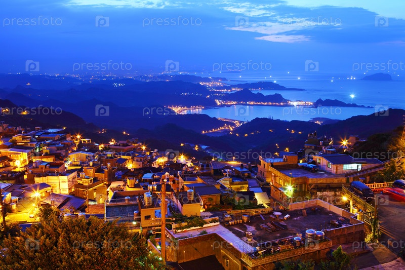 Деревня Чиу Фен в ночное время, Тайвань