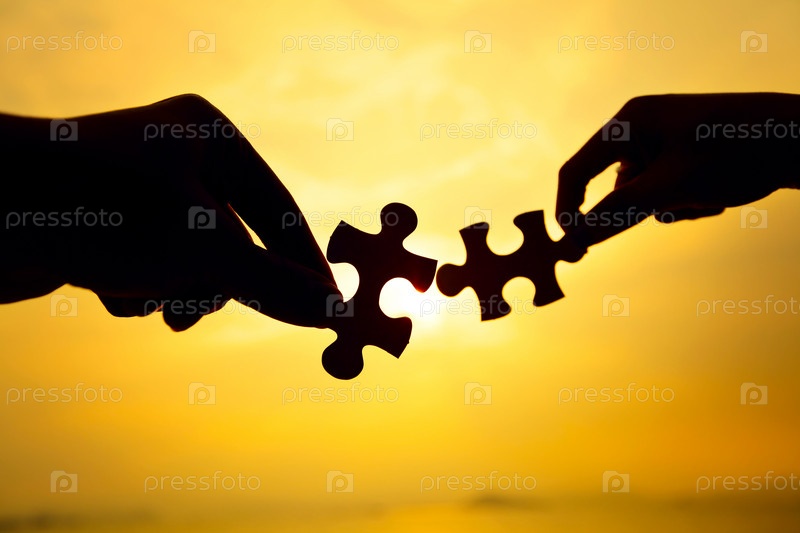 Силуэт двух рук с пазлами