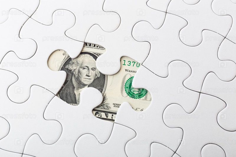 Белые пазлы и банкноты США