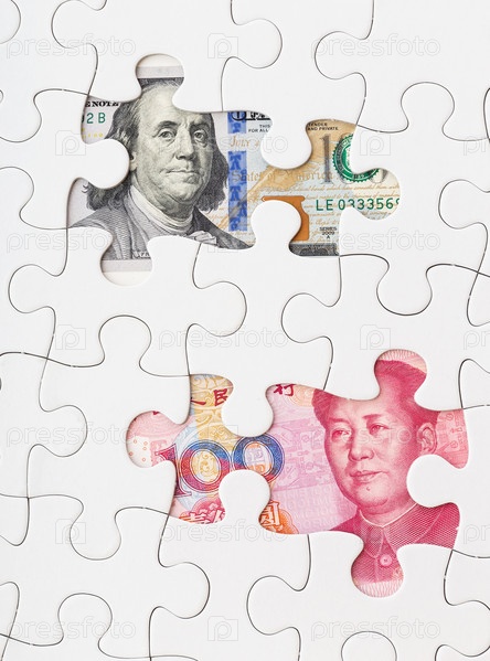 Доллар США и китайский юань под пазлами