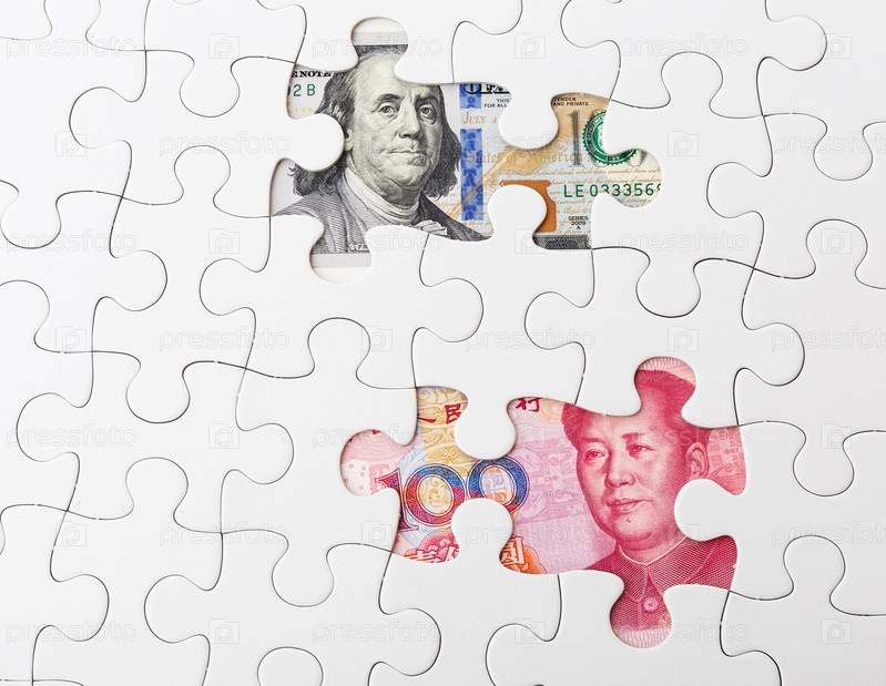 Доллар США и китайский юань под пазлами