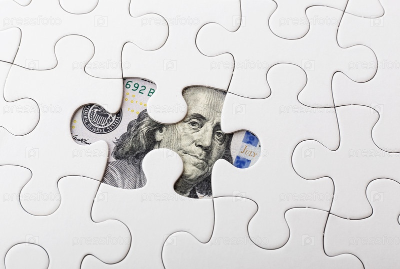 Белые пазлы и банкноты США
