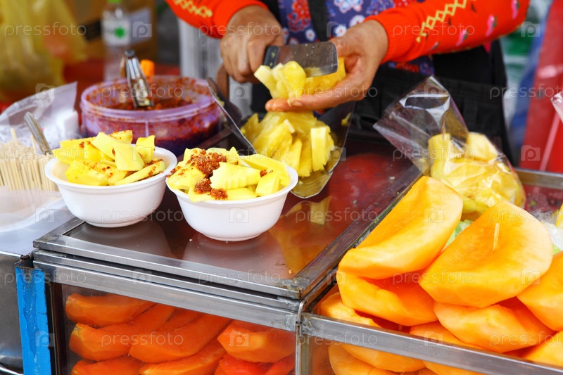 Фруктовый ларек на рынке в Таиланде