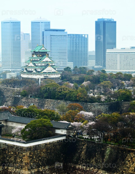 Замок Осаки и современные здания