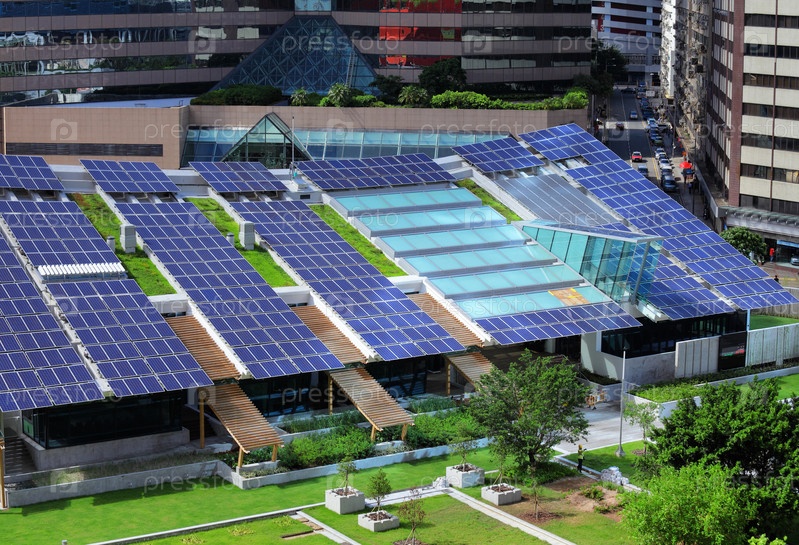 Солнечные панели на крыше здания