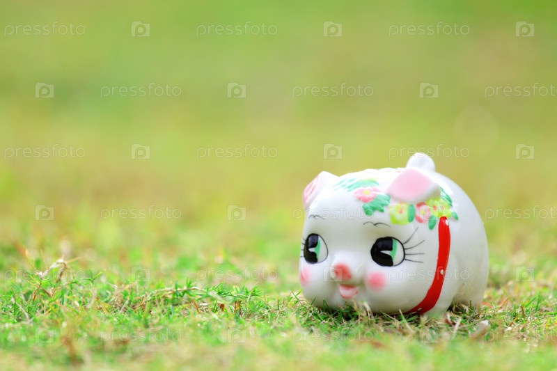 Китайская копилка на зеленой траве
