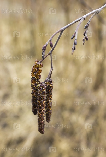 Ольховые сережки на фоне прошлогодней травы