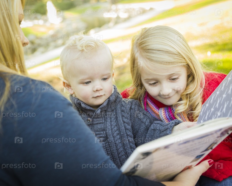Мать читает книгу детям