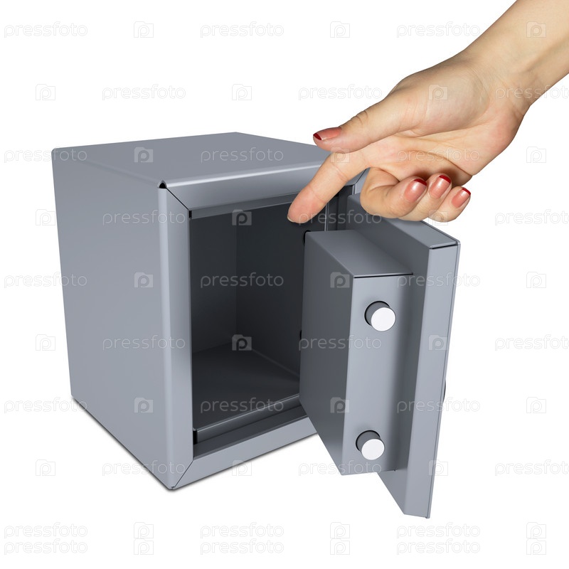 Рука указывает на открытый сейф