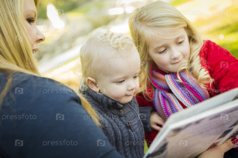 Мать читает книгу детям