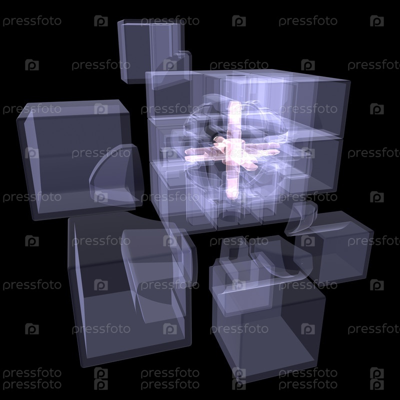 Несколько кубиков, соединенных одним ядром. Рентген