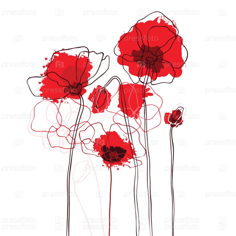 Красные маки на белом фоне