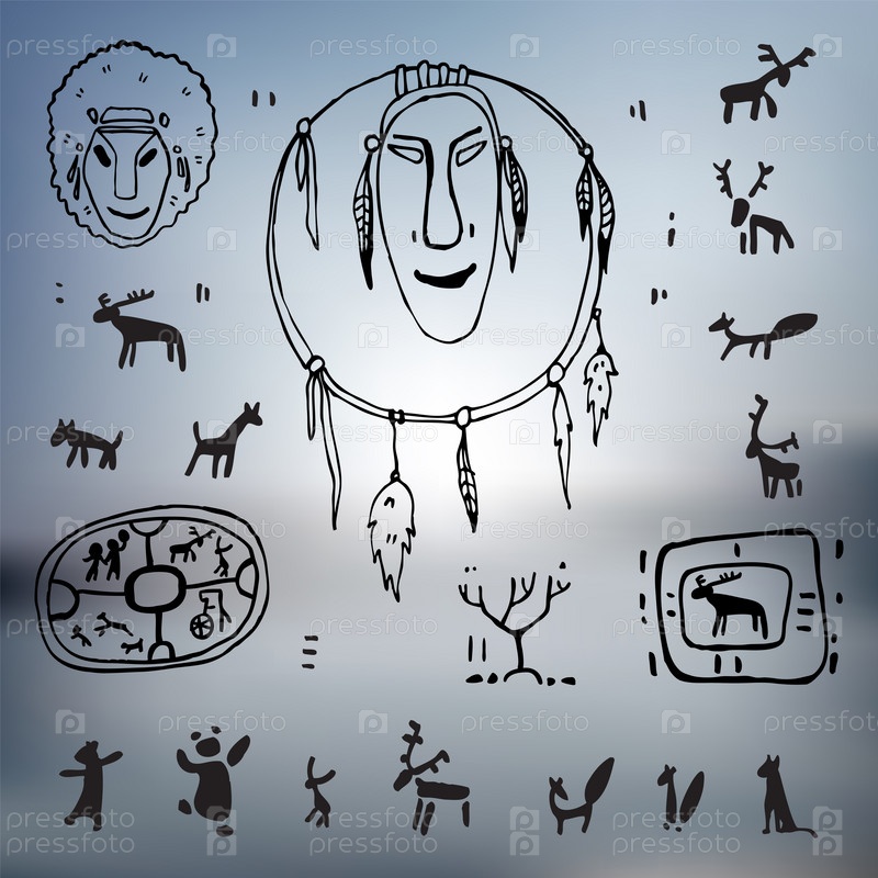 Набор примитивных доисторических рисунков