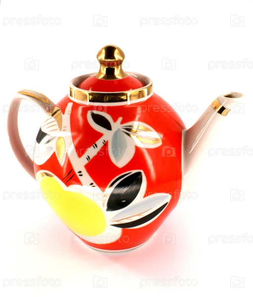 Красный с золотым чайником на белом фоне