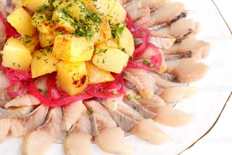 Соленая сельдь с картофелем и маринованным луком