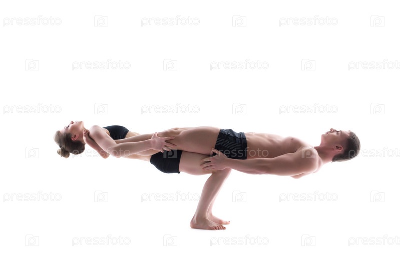 Молодые грациозные гимнасты позируют в студии на белом фоне