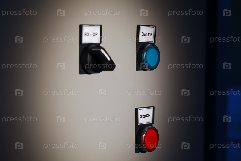 Кнопки и переключатель на серой стене