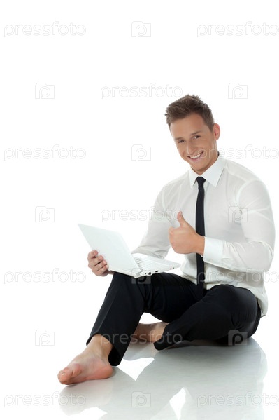 Счастливый молодой бизнесмен показывает палец вверх