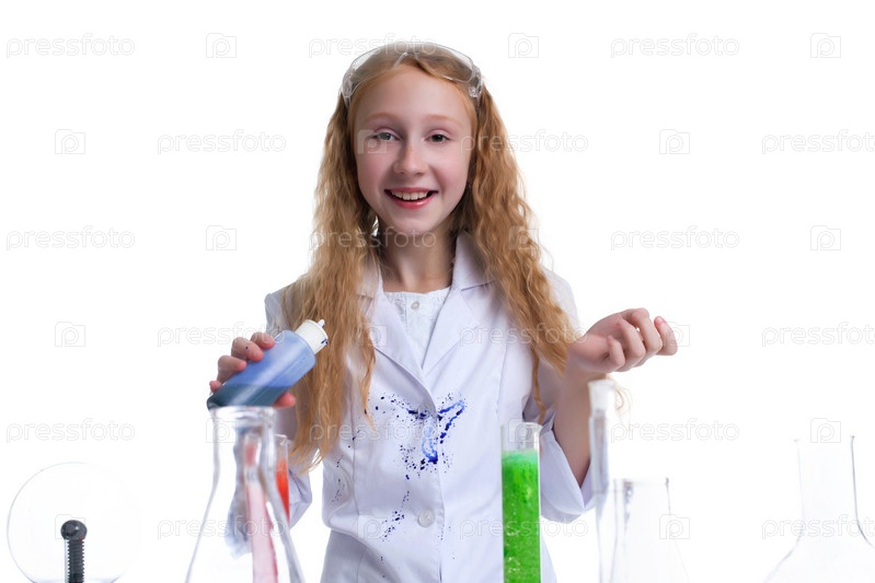 Улыбающаяся девочка позирует с пробирками в студии