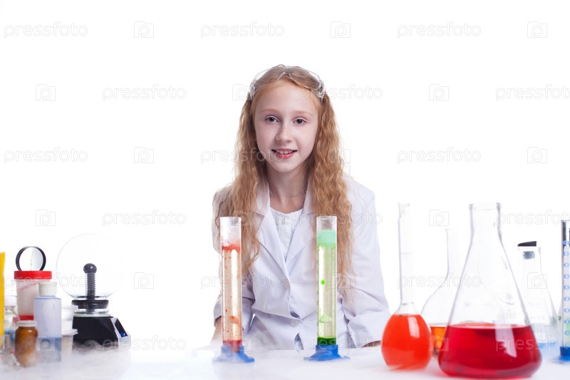 Маленький экспериментатор смотрит в камеру