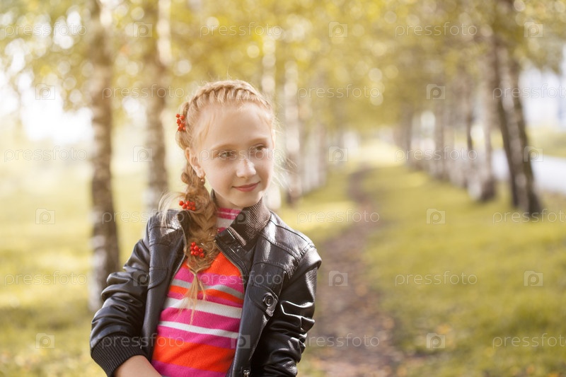 Очаровательная маленькая девочка позирует в парке осенью