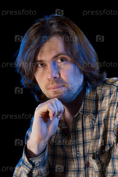 Портрет мужчины с длинными волосами. Изолирован на черном фоне