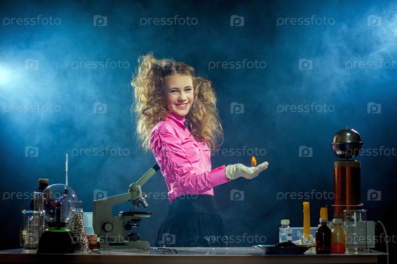 Любопытный ученый эксперует в лаборатории