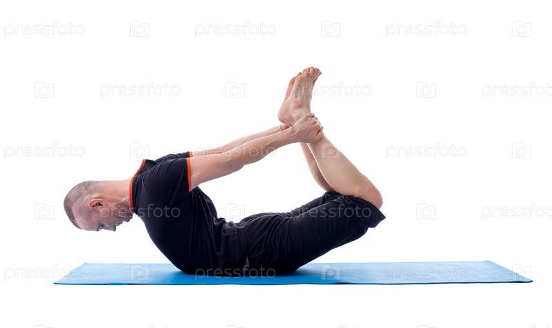 Мужчина средних лет занимается йогой