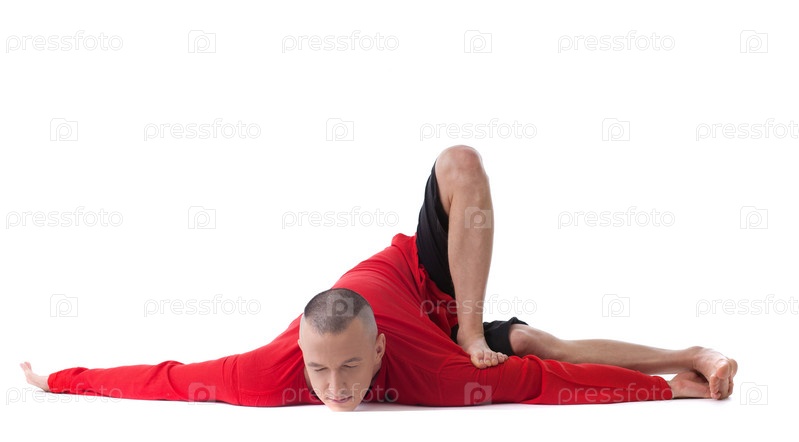 Мужчина средних лет занимается йогой