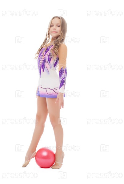 Маленькая гимнастка позирует с мячом