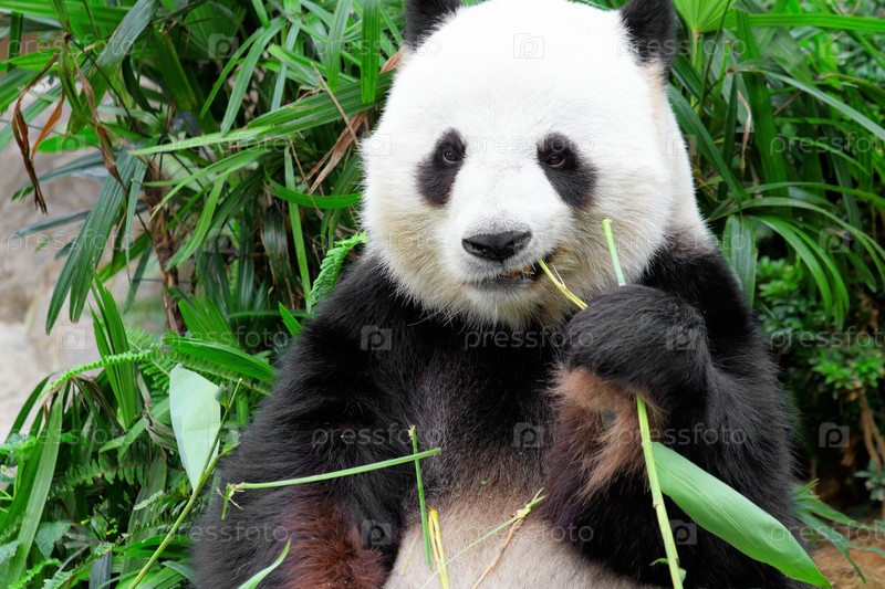 Гигантская панда ест бамбук