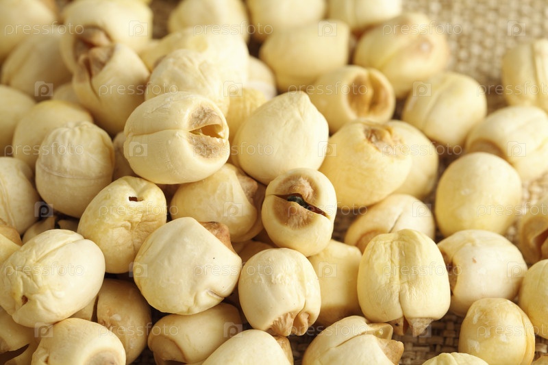Сухие семена лотоса на льне