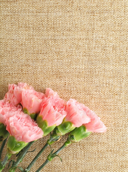 Розовые гвоздики на льняном фоне