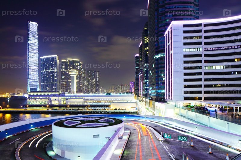 Район Коулун в Гонконге в ночное время