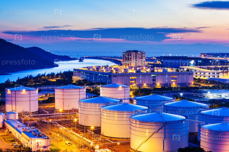 Нефтяные резервуары на закате