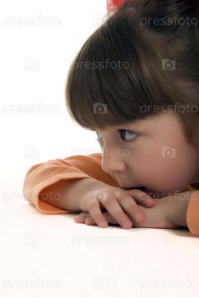 Задумчивая девочка на белом фоне