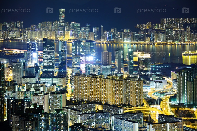 Переполненный зданиями центр Гонконга