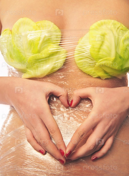 Женское тело, обмотанное целлофаном для ускорения процесса похудения