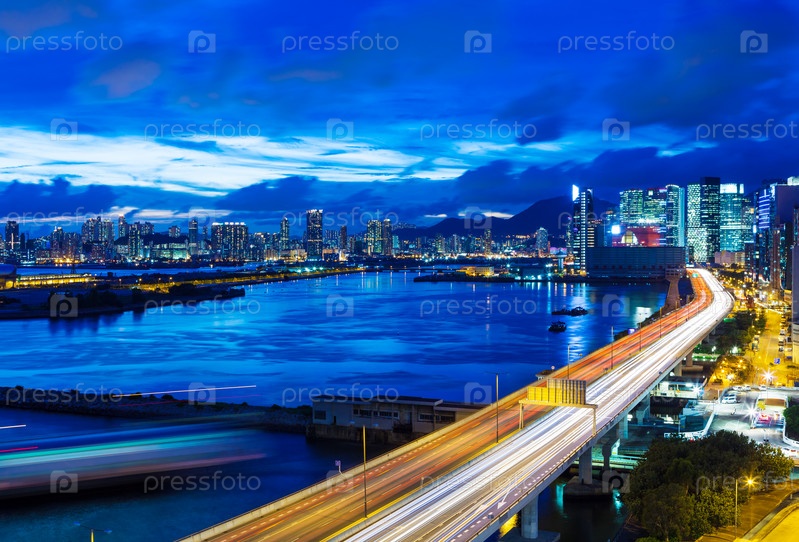 Гонконг и шоссе ночью
