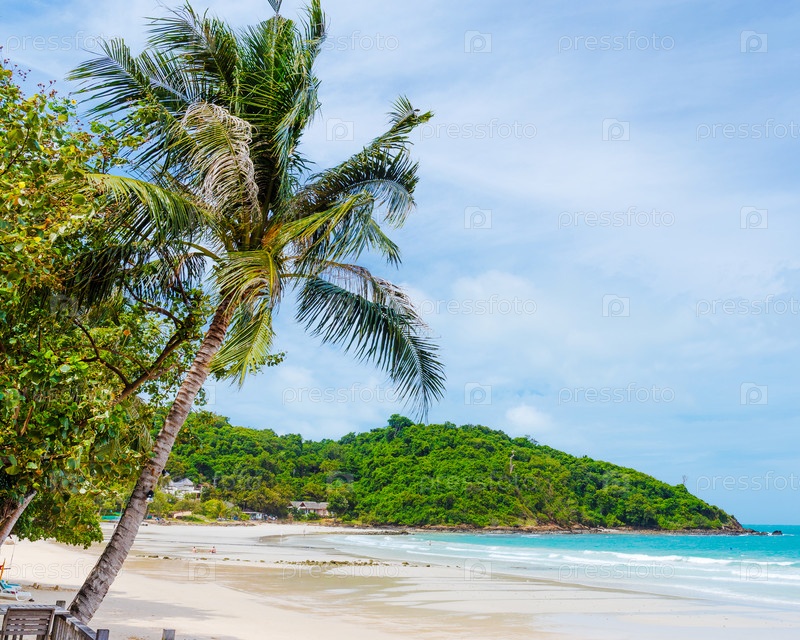 Тропический пляж с пальмами