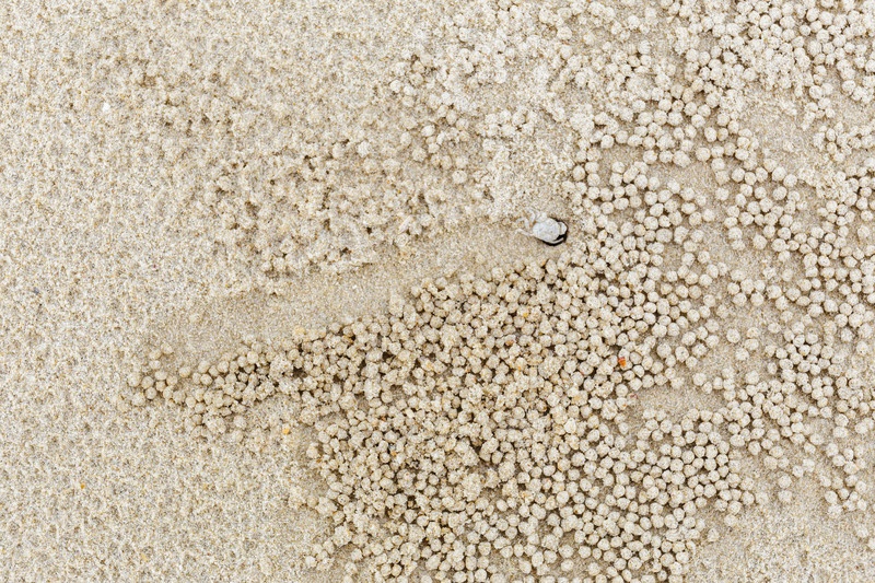 Маленькие белые крабы несут песчаные шарики