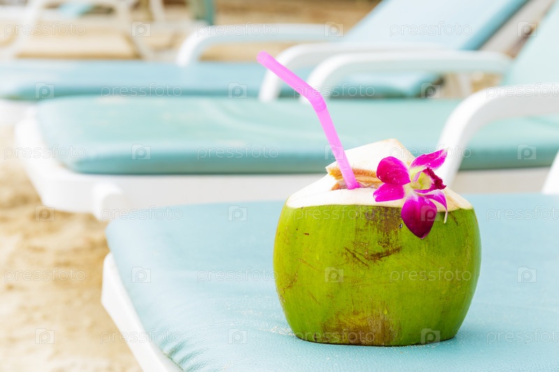 Солнечные ванны с кокосовым напитком