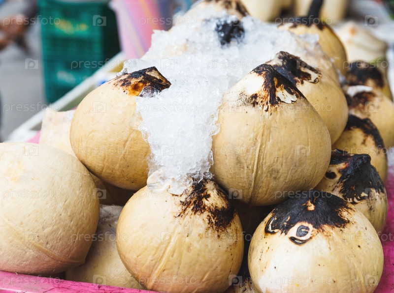 Молодой кокос на прилавке