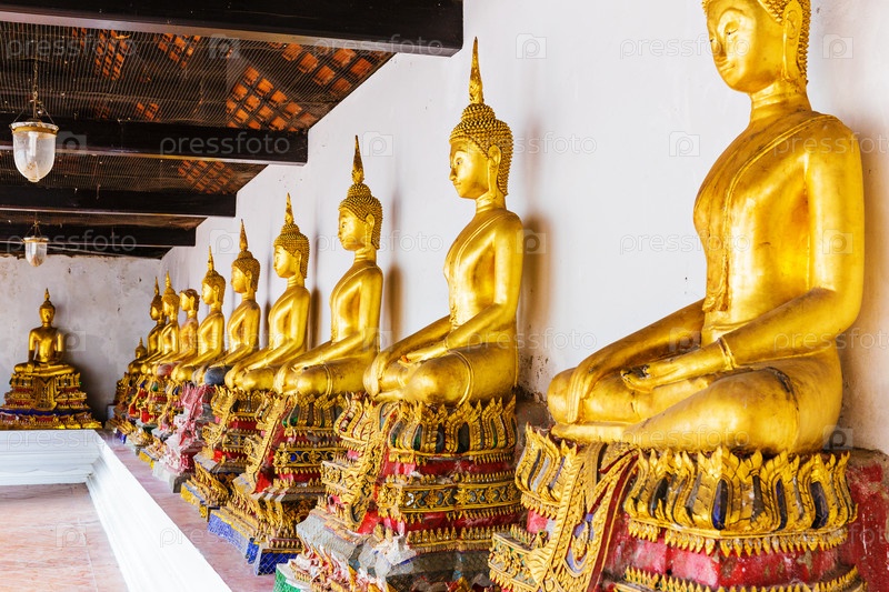 Золотые статуи Будды в храме
